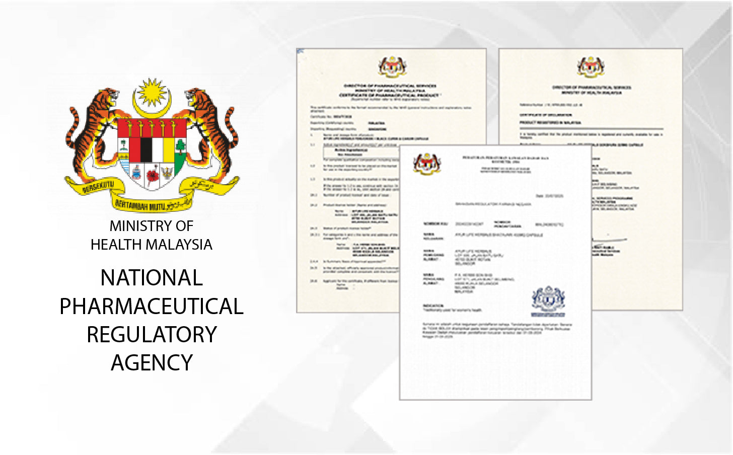Each one of our products is certified by the National Pharmaceutical Regulatory Agency (NPRA) under the purview of the Ministry of Health Malaysia (KKM).